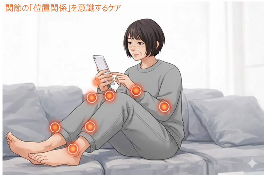 しかし、関節の位置関係を意識するケアでは、