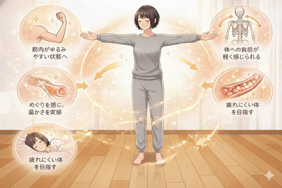 その結果として、「体が軽く感じる」「動きがスムーズに感じる」「余計な力を使っていない気がする」といった感覚を持つ人もいます。