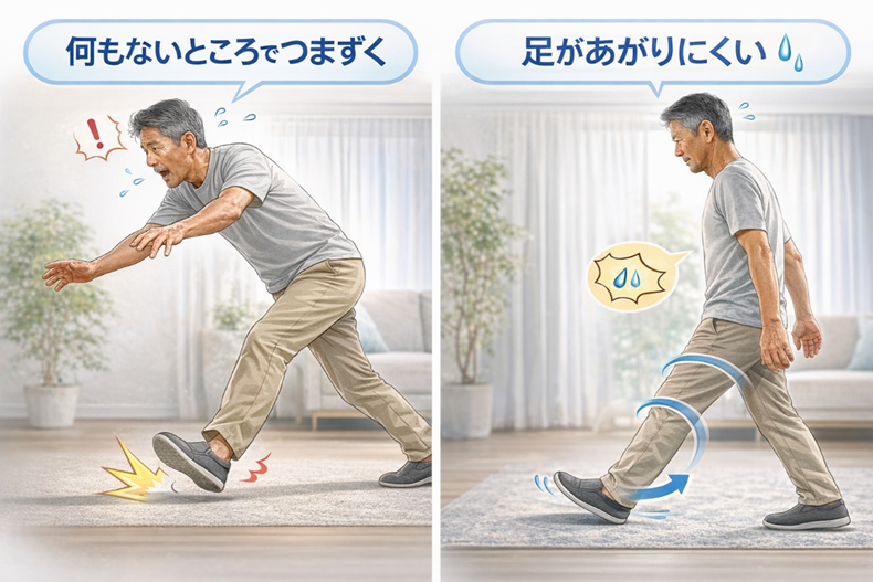 「足が上がりにくい」と感じたら、筋力不足を疑う前に、上半身と下半身の「連結器」をチェックしましょう。
