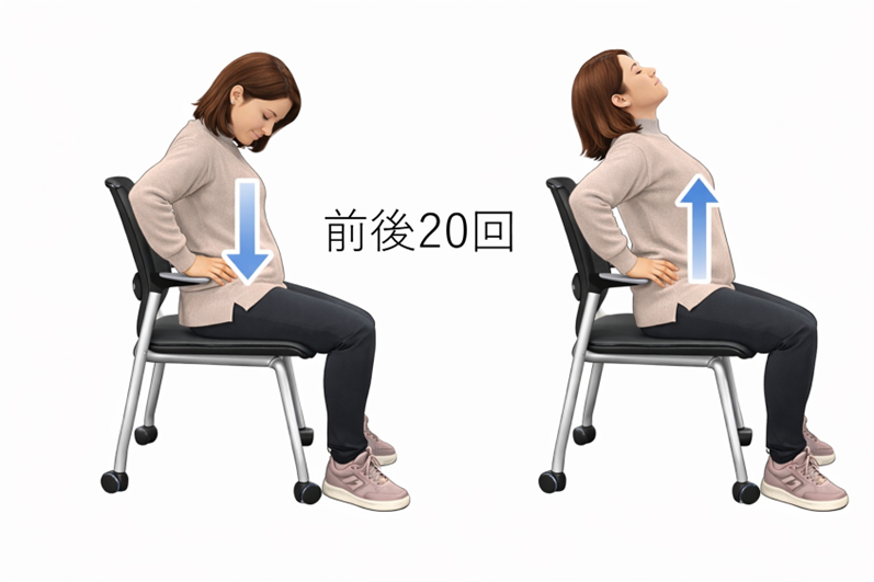 • 前後に押し出すように(おへそをみるように丸め、お腹を伸ばす)20回